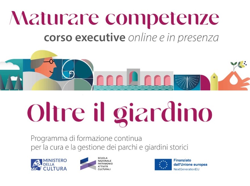 Il Ministero della Cultura informa che è online il bando di selezione per partecipare a Oltre il giardino. Maturare competenze, il corso executive per la cura e la gestione dei parchi e giardini storici che, alternando sessioni di formazione a distanza a momenti di attività in presenza, affronta i temi del verde storico in una prospettiva interdisciplinare e aggiornata.