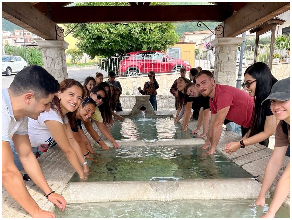 Nella foto: i partecipanti al Summer Laboratory in visita ai lavatoi di Gioia Sannitica ai quali sono legate numerose storie e tradizioni locali (fonte: Pagina Facebook del progetto)