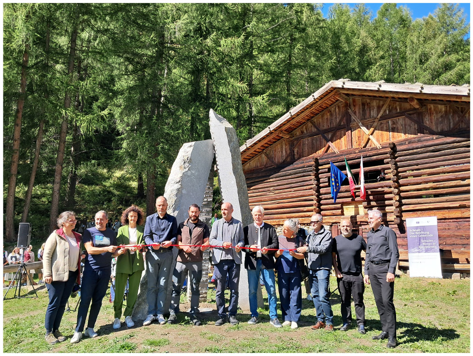 Un altro momento di rilievo è stato lo svelamento della scultura “Transumanza” dell’artista di Lasa Elias Wallnöfer e dello scalpellino della Val Senales Harald Rainer. Tre colonne in gneiss della valle con installazione sonora simboleggiano l’indissolubile legame tra uomo, pecora e cane. Solo in equilibrio tra i tre elementi nasce la stabilità – proprio come nella pratica viva della pastorizia transumante.