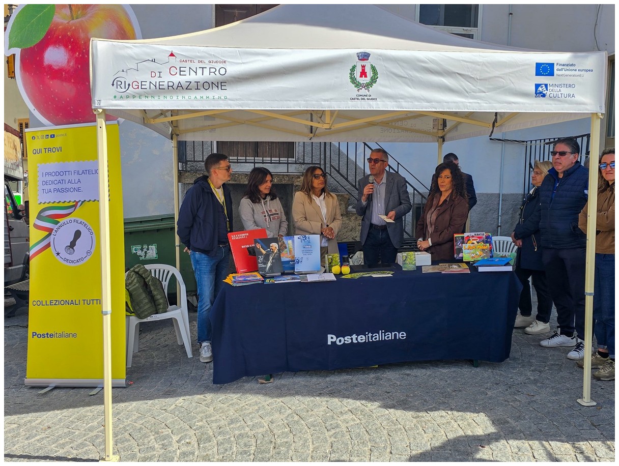 Una Castel del Giudice animata dai suoi “cantieri di rigenerazione” ha accolto in una calda atmosfera d’autunno l’11 e 12 ottobre 2025 i visitatori della Festa della Mela – 8° Edizione Esperienziale. Due giornate ricche di iniziative che hanno celebrato il frutto simbolo della rinascita del borgo molisano, la cultura della biodiversità, lo sviluppo sostenibile e la filiera agricola corta e di qualità. Una festa molto partecipata, che è stata suggellata dallo speciale annullo filatelico di Poste Italiane dedicato alla storia di Castel del Giudice e alla sua Festa della Mela.