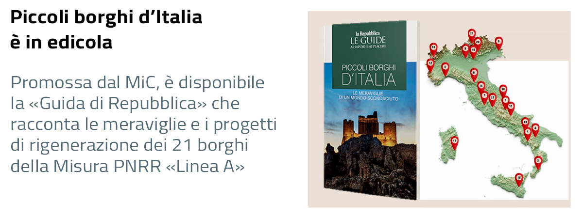 Rinforzare la rete tra i Comuni, creare uno strumento che permetta ai borghi di restare uniti per valorizzare le proprie bellezze e proporsi a un pubblico internazionale. È l’obiettivo del volume Piccoli Borghi d’Italia: le meraviglie di un mondo sconosciuto, che le Guide di Repubblica dedicano ai 21 Borghi candidati dalle Regioni e finanziati dal Ministero della Cultura per l’ambizioso programma di rigenerazione culturale, sociale ed economica previsto dalla Misura PNRR “Attrattività dei borghi – Linea A”.